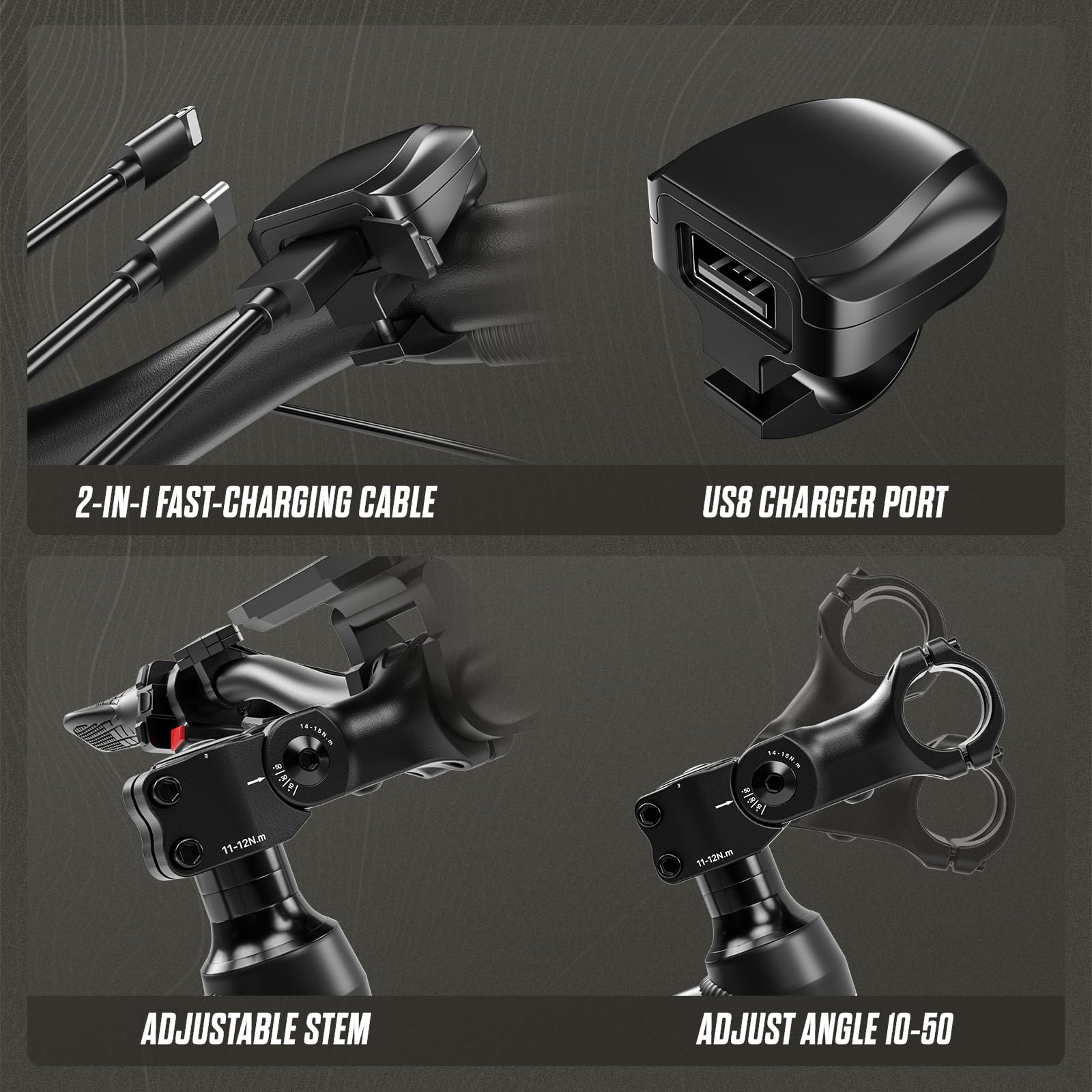 - 🚲 【Superior Shock Absorbers】 The 7-level suspension system includes 2 front fork shock absorbers, 1 rear shock, 2 seat springs, and 2 fat tires. This setup enhances traction and stability on diverse surfaces, providing excellent shock absorption and ensuring strong performance on rocky trails, muddy paths, and steep inclines.