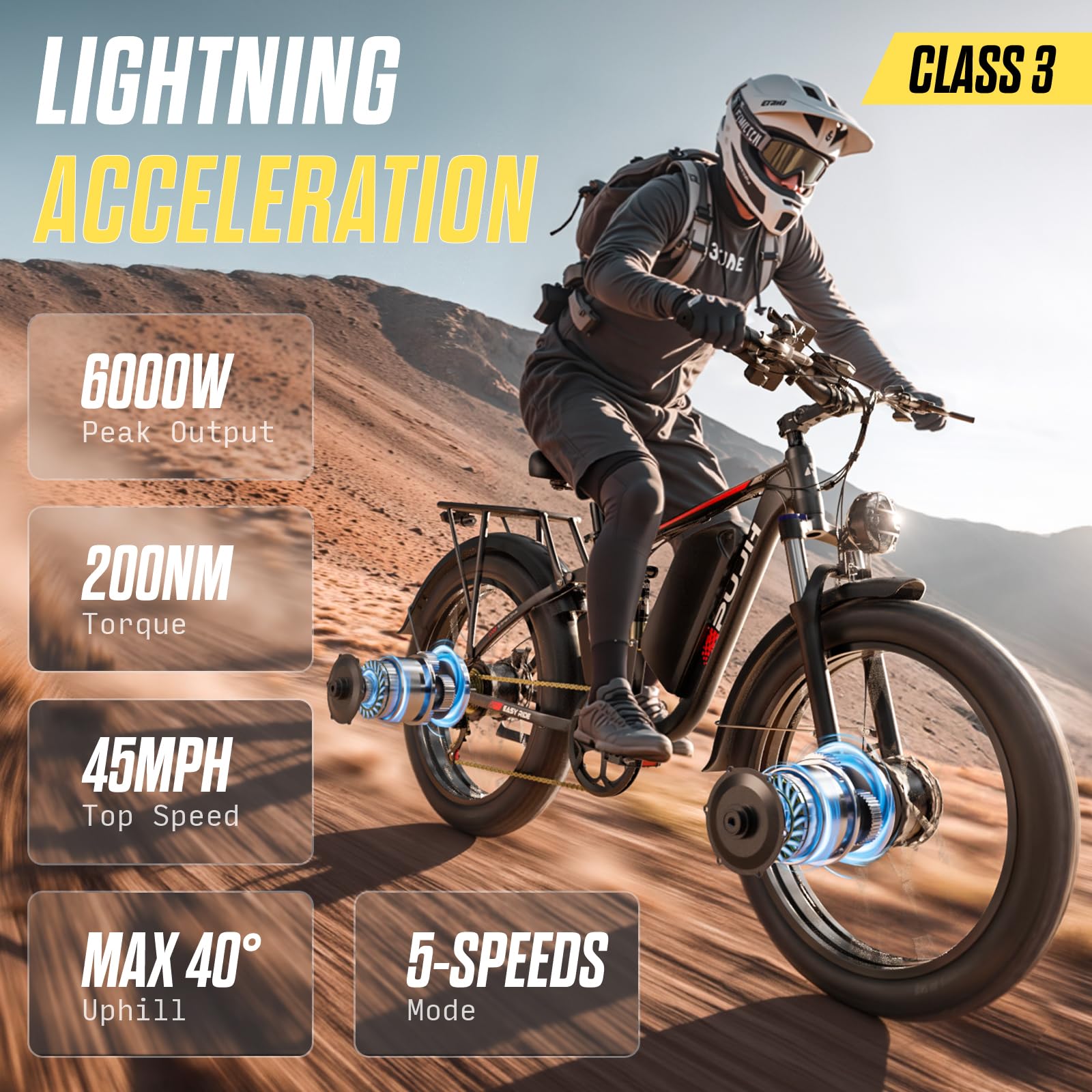 6000W Dual Motor Ebike for Adults 60V Fast Electric Bike for Men Women 45 MPH,Up to 100 Miles,24" Fat Tire Suspension Electric… is designed for everyday use.