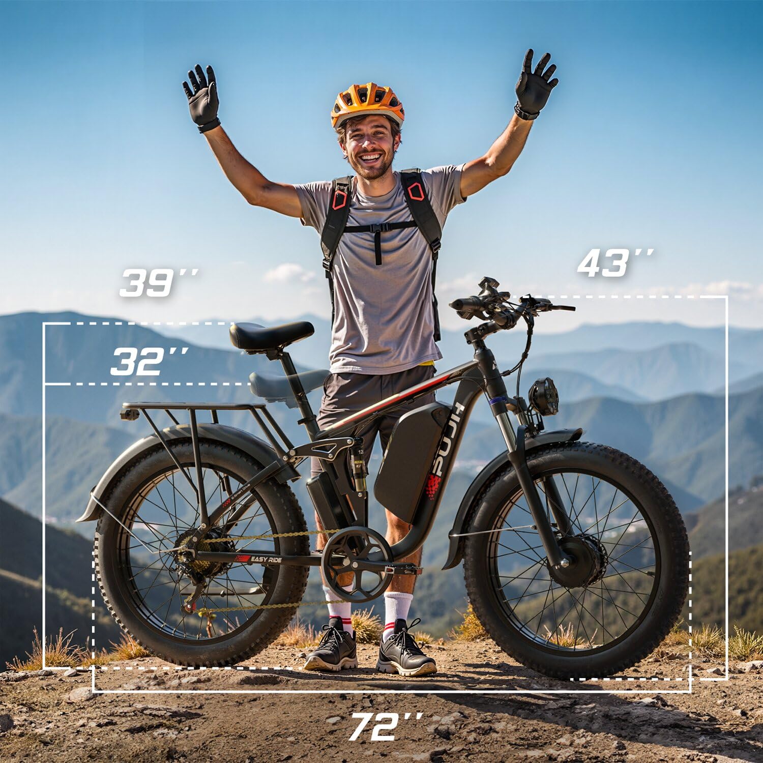 - 🚲 【All-Terrain Fat Tires】 Designed with 24×4.0 inch fat tires, these provide a larger contact patch with the ground, offering superior grip and traction. This is especially beneficial on off-road or slippery surfaces where extra traction is crucial, making riding safer and more comfortable on uneven or loose terrain such as sand, snow, mountains, or gravel.