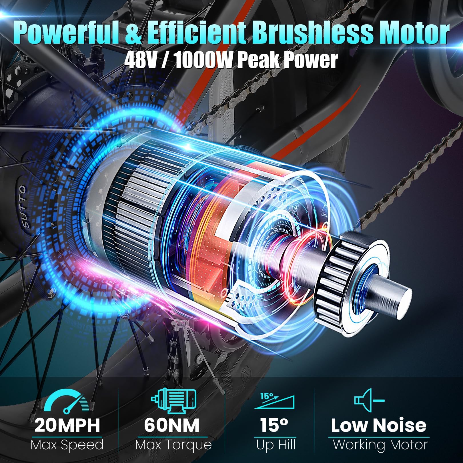 - Peak 1000W Powerful Motor: The electric bike for adults features a Peak 1000W high-speed brushless motor for smooth acceleration, minimized sound, and extended motor life. The max speed ups to 20MPH, easily through 15 degrees hill. Perfect for commuting, outdoor adventure, and leisurely rides. The adult electric bike has SGS Certified to UL 2849 and UL 2271, please ride without worry