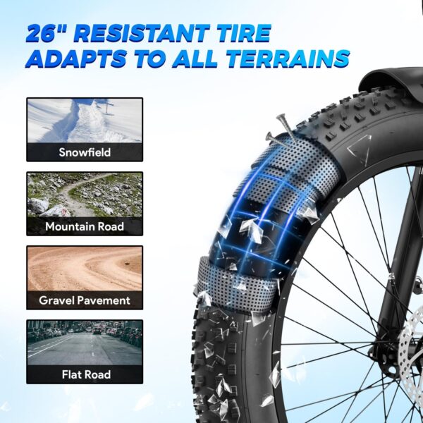 Wide 26 × 4.0 inch fat tires are designed to enhance grip and balance on dirt paths, gravel, and pavement. An integrated display provides essential riding information such as assist level and battery status. A multi-mode assist system combined with a 7-speed drivetrain allows riders to adapt to different riding preferences.