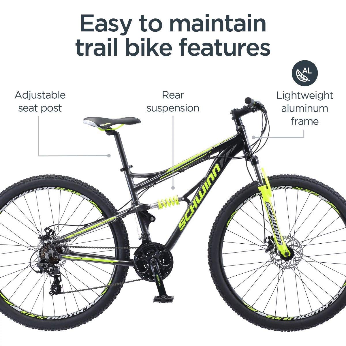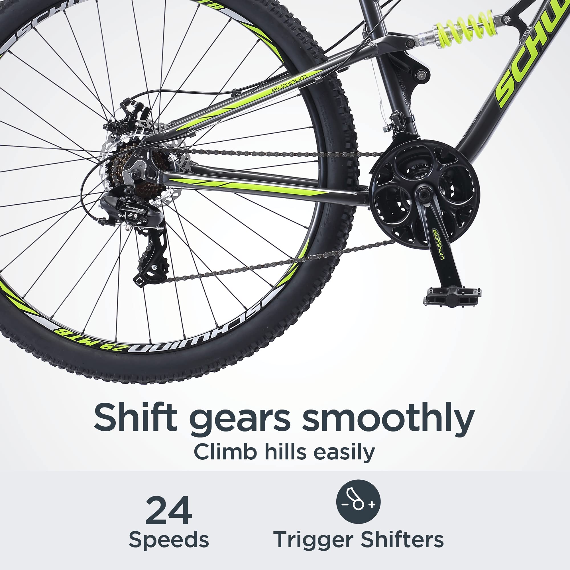 Traxion Mountain Bike for Adult Men Women, 29 – Inch Wheels, Full Suspension, 24 – Speed Shimano Drivetrain, Trigger Shifter, 18… is designed for everyday use.